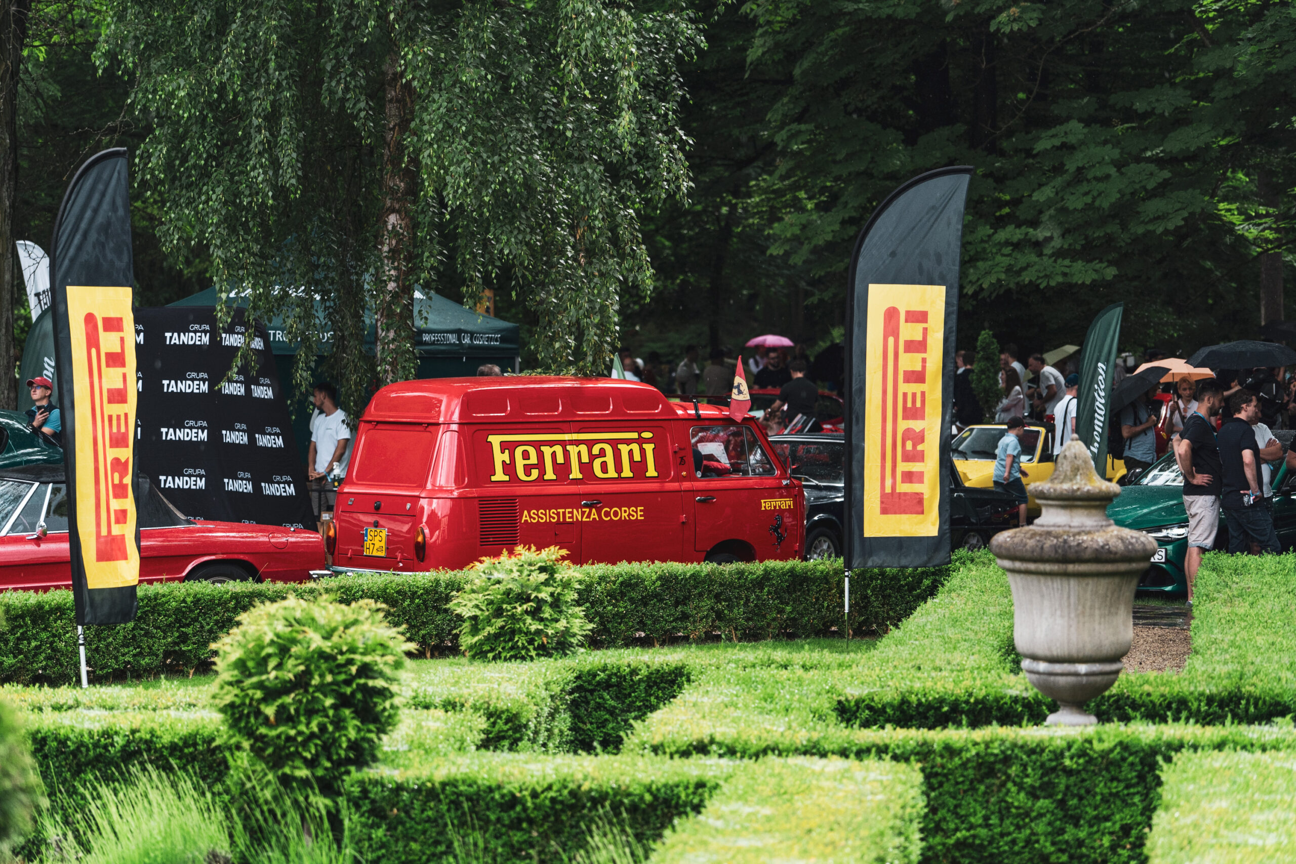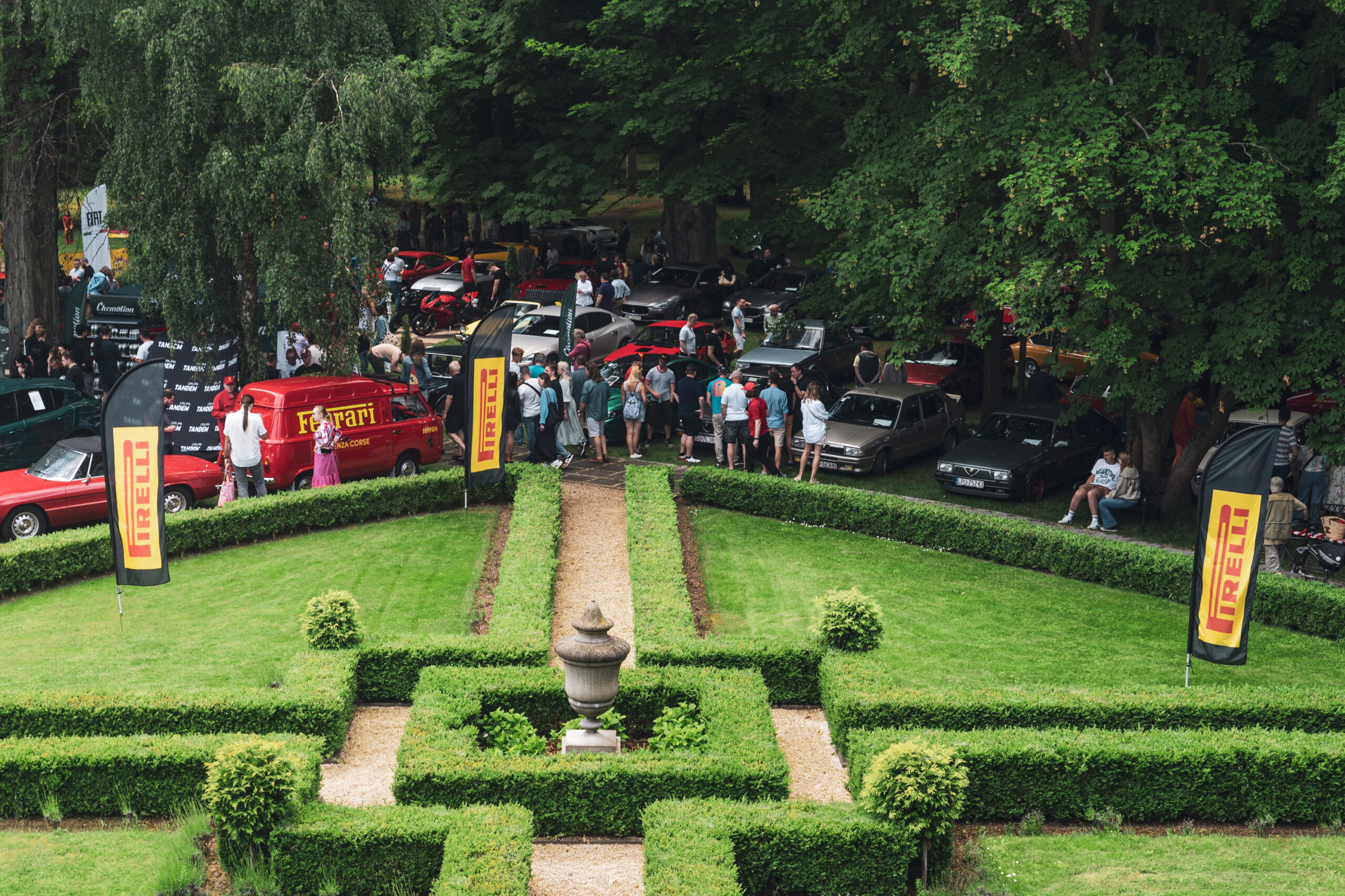 Jakie elementy kojarzą się z krajobrazem zlotów ForzaItalia.pl? Ciekawe klasyki, malowniczy pałac i… żółte flagi Pirelli. Tak, Pirelli jest z nami od bardzo wielu lat. Nie tylko dbają o to, żeby w pakietach dla uczestników znalazło się zawsze wiele ciekawych gadżetów. Uczestnicy zlotu, dzięki zaangażowaniu Pirelli, mieli też okazję wysłuchać ciekawych wykładów czy skorzystać ze specjalnej oferty na zakup opon.